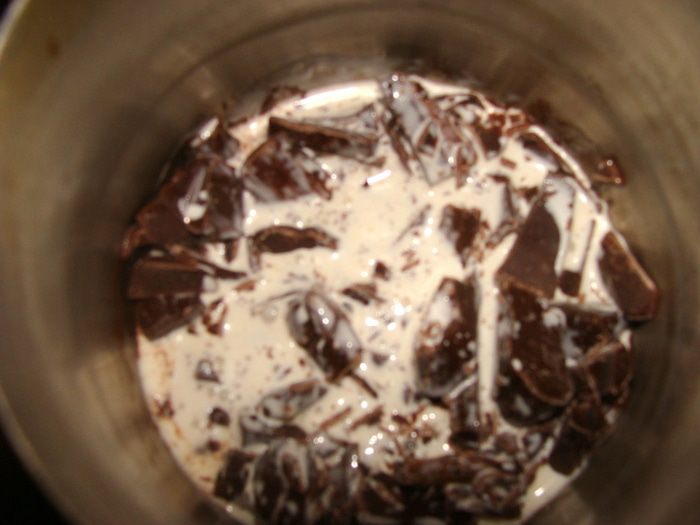 Шоколад измельчить, добавить сливки и растопить на водяной бане.