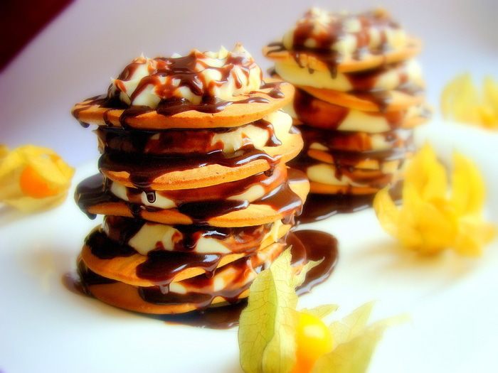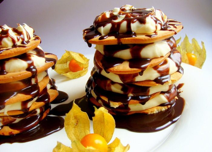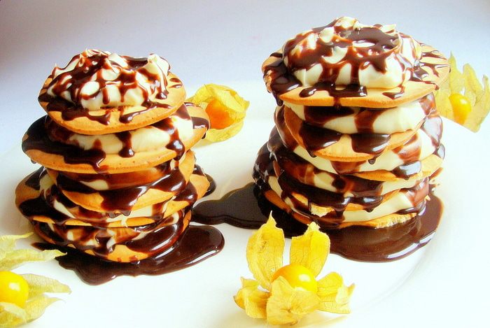 И так повторяем столько раз, сколько вы хотите слоев. У меня в итоге получилось две башенки из 5 печенек. 2 печенья, я съела по дороге))))