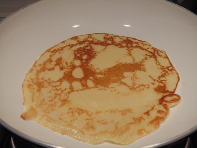 Выпечь блины, первый раз смазать сковороду оливковым маслом.