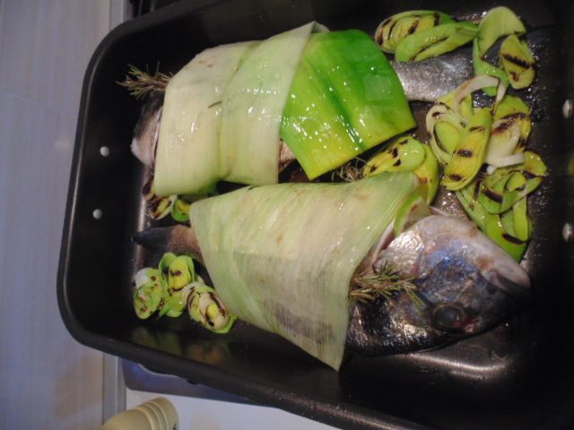 Рыбу почистить, удалить внутренности,обсушить бумажными полотенцами. Приготовить маринад из оливкового масла , бальзамического уксуса, соли, перца и кориандра. Натереть маринадом рыбу. Лайм порезать колечками, в брюшко каждой рыбы положить колечко лайма, под жабры положить по дольке лайма.