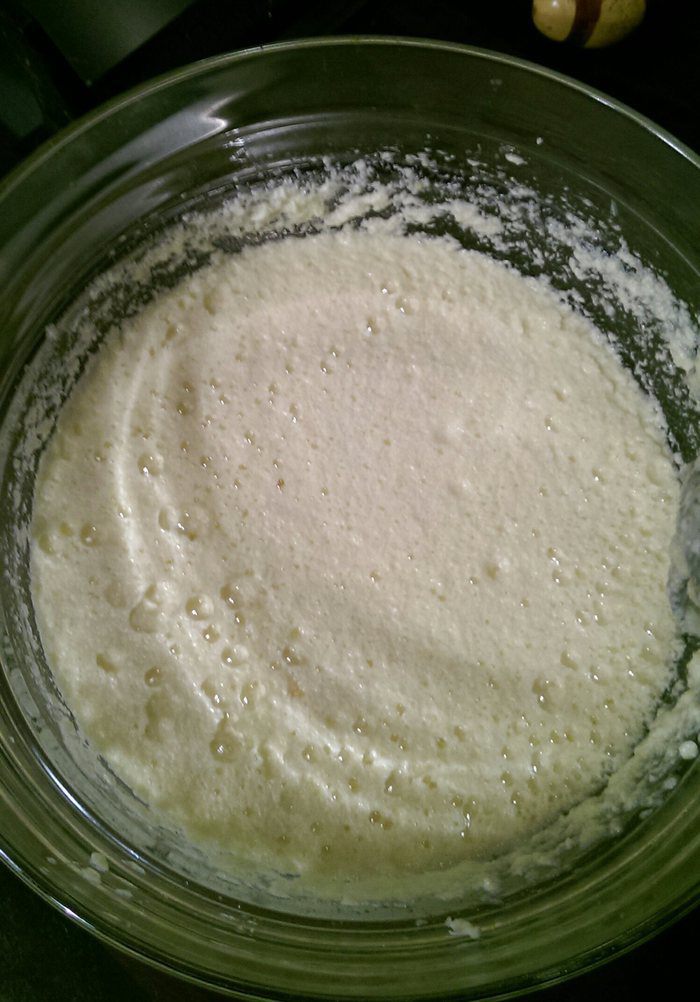 Муку смешать с разрыхлителем, перемешать с яичной смесью и добавить туда лимон.