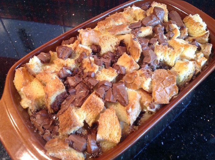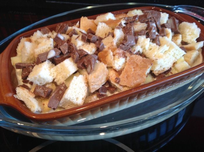 Сверху распределите оставшийся хлеб и шоколад.