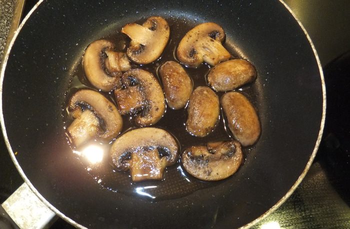 Отдельно обжарьте грибы целыми пластинками.