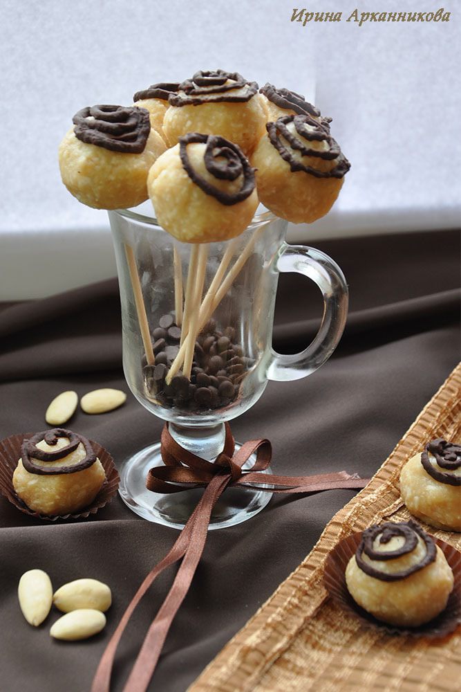 Готовые конфетки можно наткнуть на деревянные палочки и вот так подать гостям!
