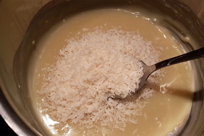 Добавить кокосовую стружку.