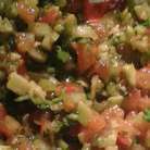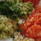 Помидор, авокадо, стебель сельдерея, раздавленный чеснок, веточку петрушки - нарезать, как можно мельче.