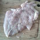 Куриное филе, помыть затем просушить салфеткой. Филе отбить, накрыв его пленкой. Я отбиваю скалкой, чтоб мясо сохранило как можно больше соков.