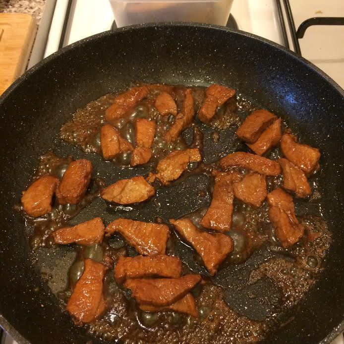 Добавить 1 ст. л. соевого соуса, 1 ч. л. устричного соуса, перемешать и тушить 5 минут.