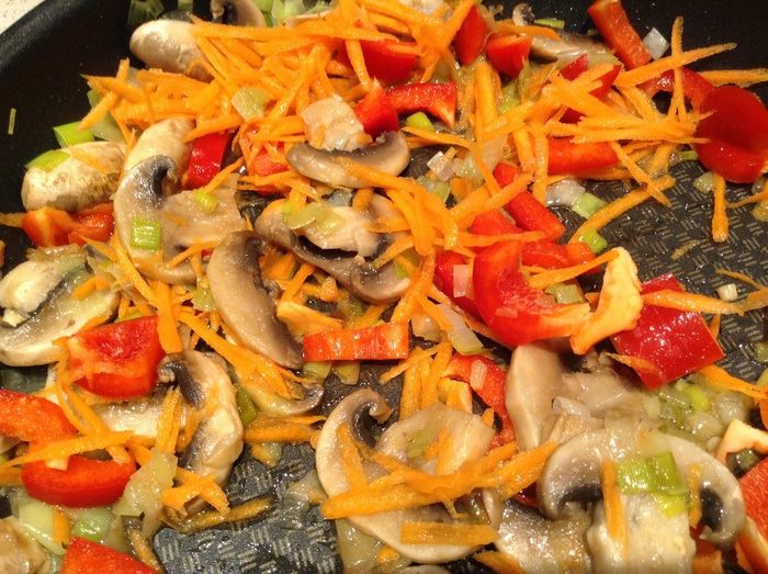 Добавить перец и морковь (морковь натереть на терке).