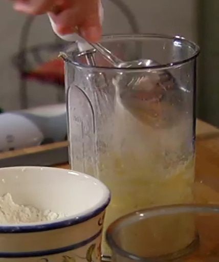 Ввести оставшуюся муку и взбивать до получения однородного теста.