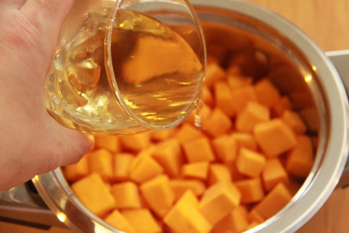 Тыкву потушить до мягкости с маслом и вином.