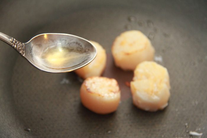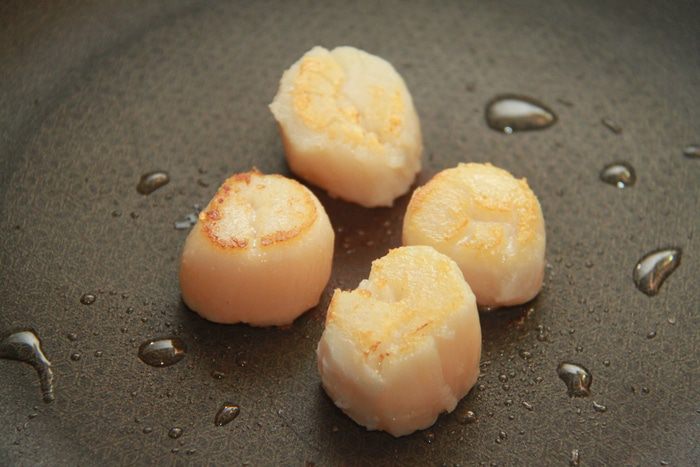 Гребешки обжарить с обеих сторон (в общей сложности не более 3-х минут).
