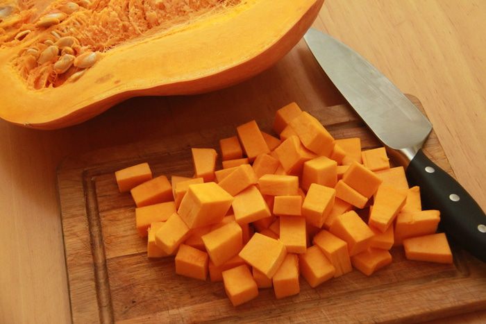Мякоть тыквы нарезать кубиком.