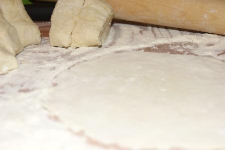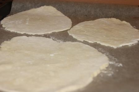 Тесто разделить на 6 частей. Раскатать лепешки толщиной 5 мм.