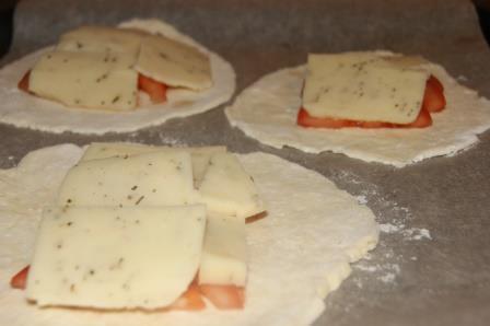 Лепешки из творожного теста с помидором и моцареллой