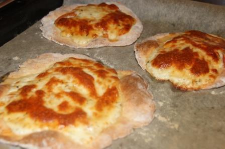 На лепешки выложить начинку (помидоры и моцареллу).