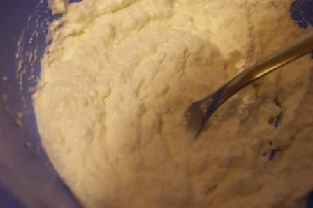 Готовим тесто. Смешать мягкий творог с молоком, маслом и солью, тщательно перемешать.