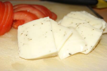 Моцареллу порезать кусочками. Я использовала уже полюбившуюся моцареллу с травами. Еще раз спасибо Лизе за ее открытие для меня=)