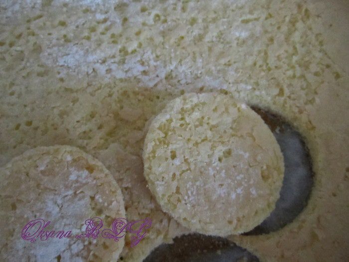 Бисквит тонкий и выпекается быстро. Готовый бисквит охладить вырезать кружки для пирожного.