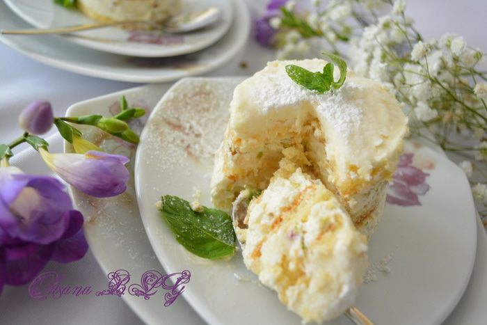 Такой вариант тирамису порадует своим нежным сочетанием бисквита пропитанного лимонным сиропом и кремом с добавлением фисташек.