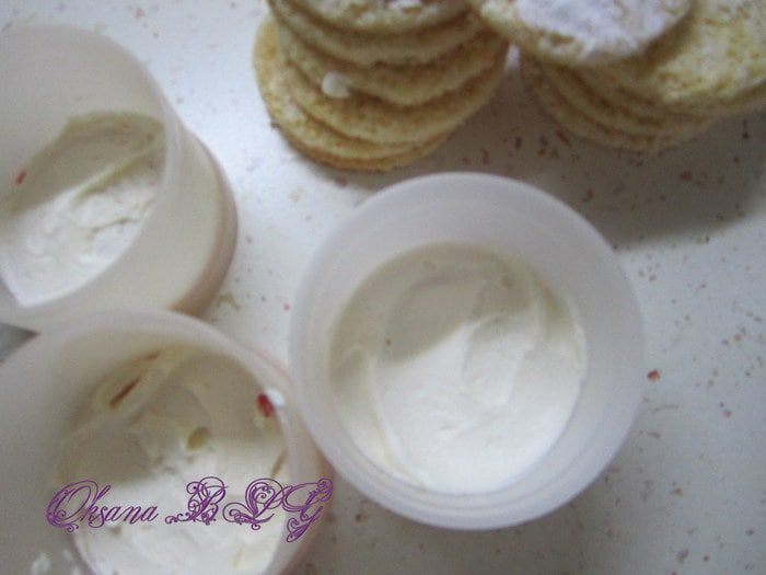 Затем выложить крем, повторить слой бисквита и крема.