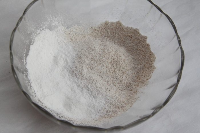 Муку и крахмал просеять.