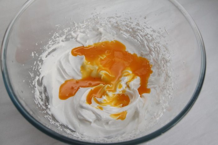 К белковой массе добавить желтки.