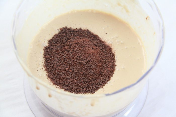 Крем разделить на две равные части. В одну часть добавить шоколад (3 ст.л.), лучше растопленный. Крем взбить.