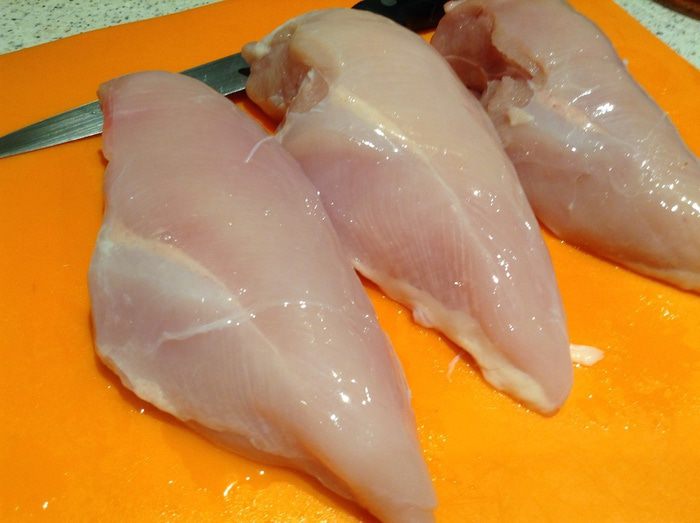 Помыть куриные грудки.