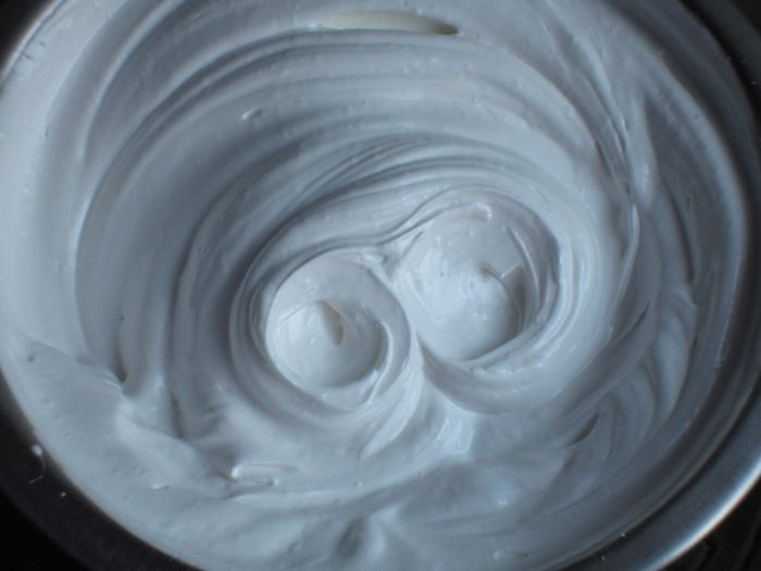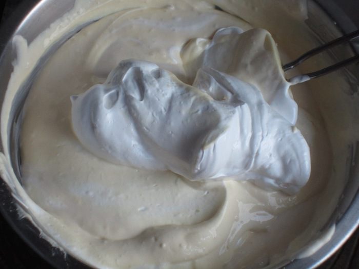 Аккуратными движениями снизу-вверх ввести белки в начинку.