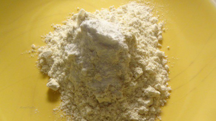 В отдельной миске смешать муку (3 ст.л. с верхом), разрыхлитель и соду.