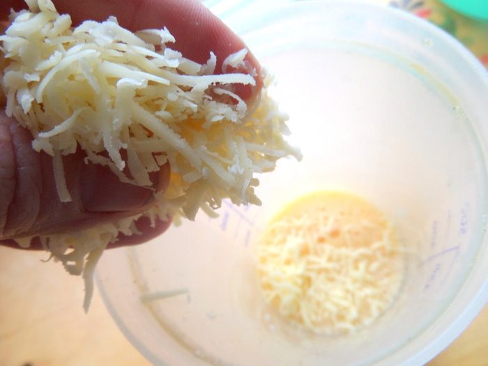 Добавим половину натёртого сыра,снова встряхиваем.