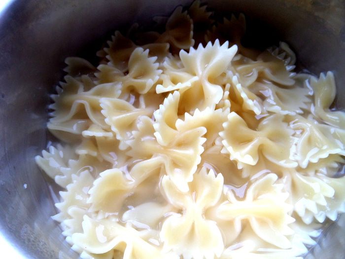 Варим макароны до полуготовности в подсоленной воде.