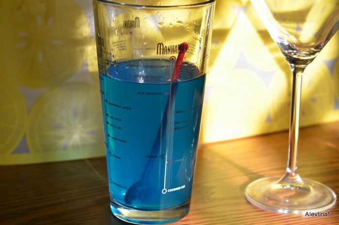 Для любителей коктейлей. На основе голубого ликера Кюрасао, делают его из винного спирта с добавлением апельсиновой сушенной корки, мускатного ореха, гвоздики и корицы. Ликер бывает оранжевым, зеленоватым или бесцветным, голубым.