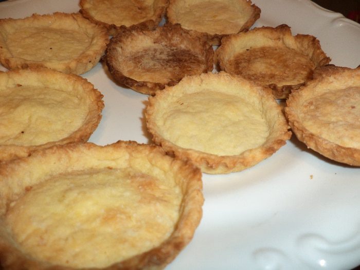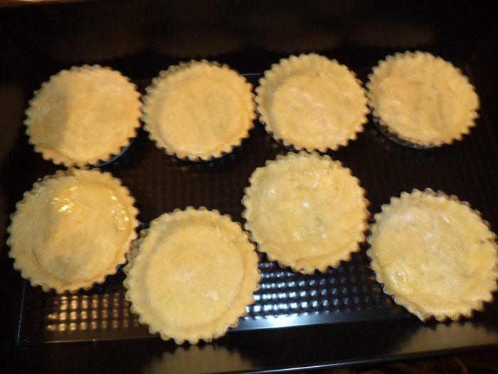 Раскатать тесто в тонкий пласт, вырезать из теста кружочки, и выстелить ими формочки для тарталеток, смазанные маслом. Выпекать 15 минут при температуре 180 градусов.
