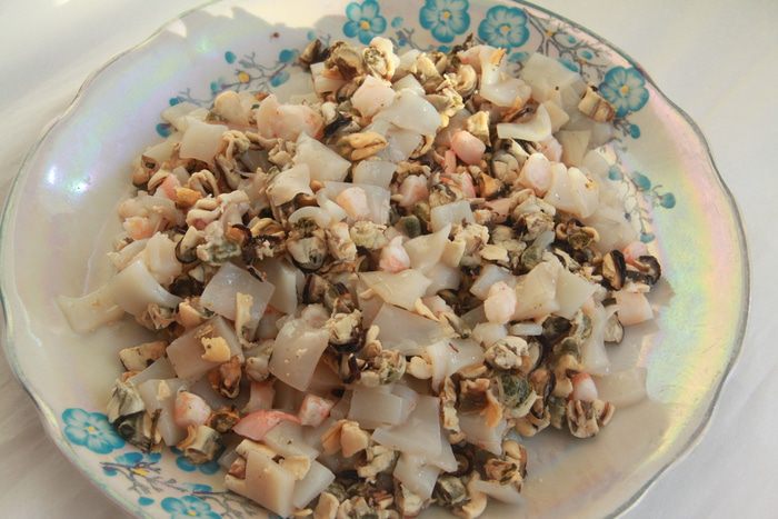 Добавить морепродукты и обжаривать ещё несколько минут.