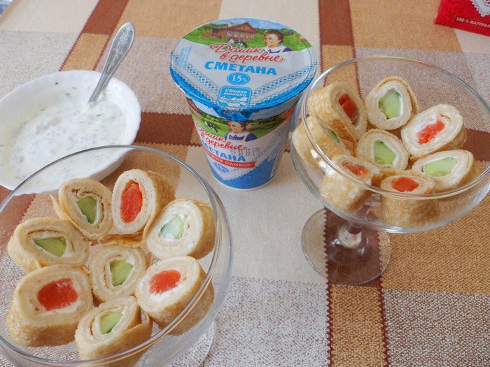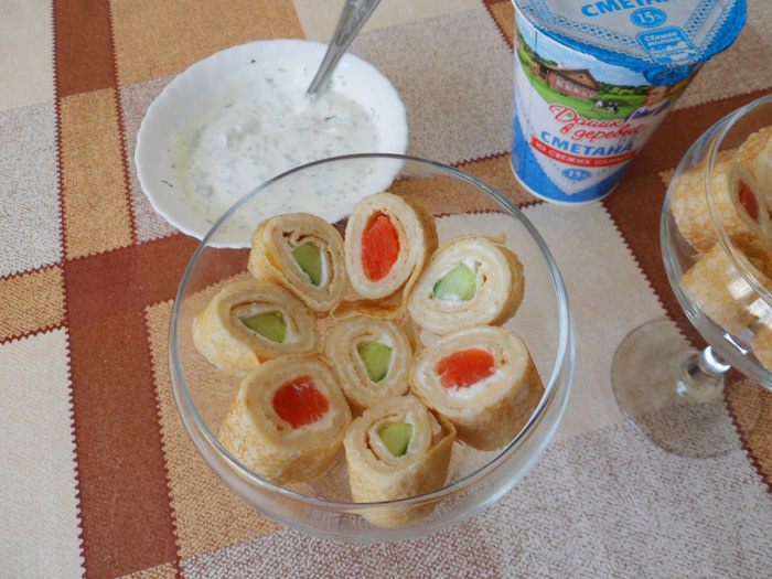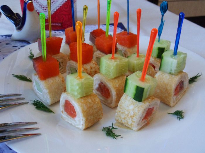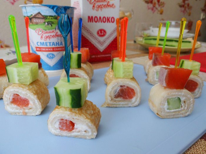 Из оставшихся блинных «бочонков» можно приготовить канапе.