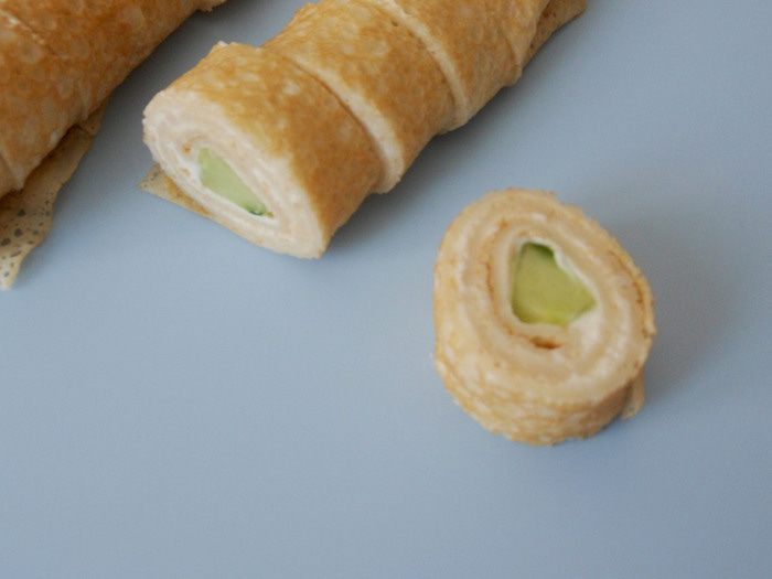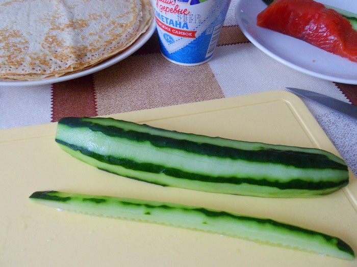 Плотно сворачиваем. Блин с огурцом готов.