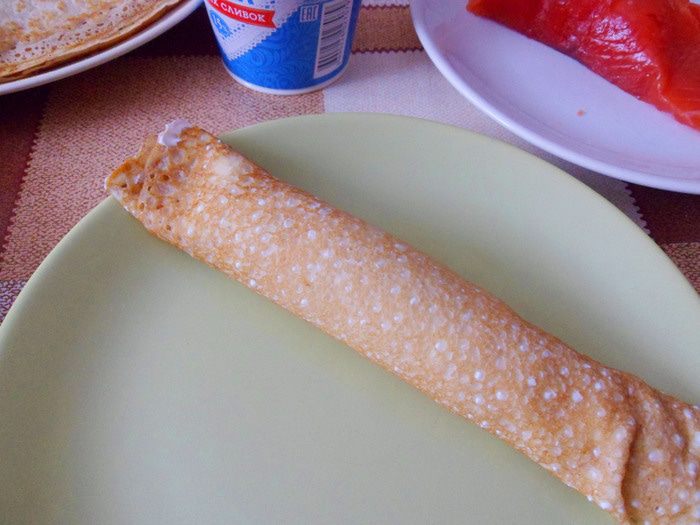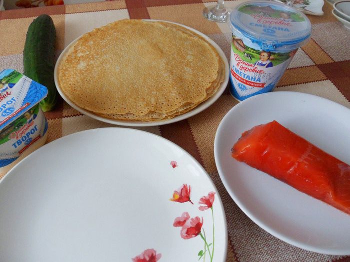 Блин с семгой готов.