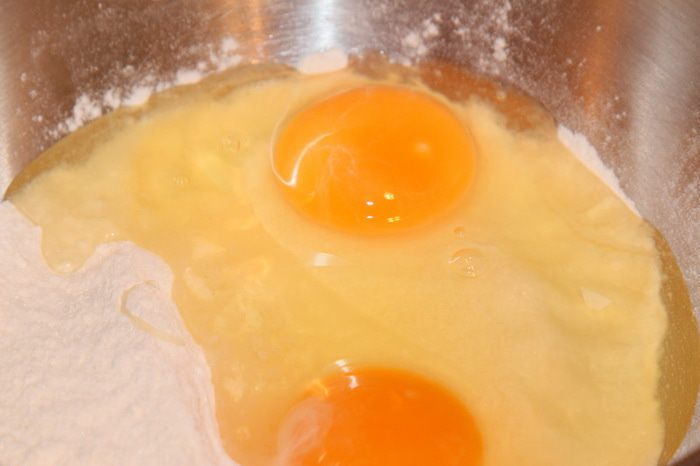 Добавляем к сухой смеси яйца.