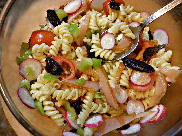 Очень вкусный и сытный салат с пастой джирандоле, который прекрасно подойдёт в качестве быстрого ужина!