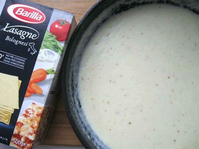 К обжаренным овощам добавить мясо, тушить с добавлением вина и пассированных помидор 1 час 5 мин. на маленьком огне желательно в теплоемкой кастрюле, из которой меньше идет испарение, чем со сковороды. Вначале крышкой кастрюлю не закрывать, минут через 10 – 15 это надо сделать (неплотно закрыть для легкого испарения). Не забывать периодически помешивать. В конце приготовления посолить, поперчить, добавить измельченный через пресс чеснок, мускатный орех.