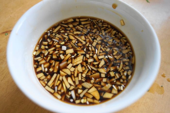 Подготовить медовый маринад: чеснок мелко порубить. Смешать мед и соевый соус, хорошо перемешать, добавить чеснок.