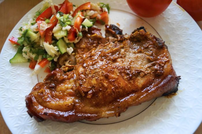 Свиная отбивная на кости с медовым маринадом + салат "Скоро весна"