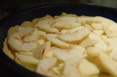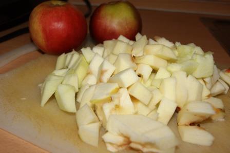 Тем временем яблоки очистить, порезать дольками.