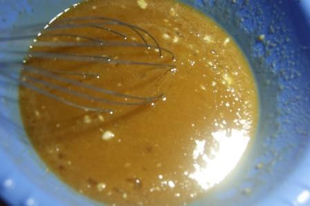 Приготовить заливку. Смешать с помощью венчика все компоненты заливки.