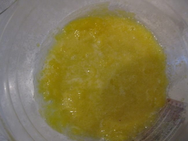 Желтки перемешиваем с сахарной пудрой ложкой и также взбиваем.