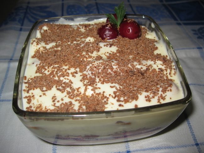 В этот раз я приготовила итальянский десерт тирамису с вишней в шоколаде. Получилось ооочень вкусно. Сочетание кислой вишенки и сладкого шоколада всем очень понравилось. У меня вишня замороженная, летом конечно возьмем свежую. Вишневый ликер плюс вишня с шоколадом дает обалденный аромат. Слои в тирамису я сделала по другому, для того чтобы вишня пропитала печенье. Очень вкусно.