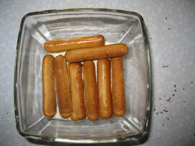 Печенье мокаем в кафе с вишевым ликером. И выкладываем.