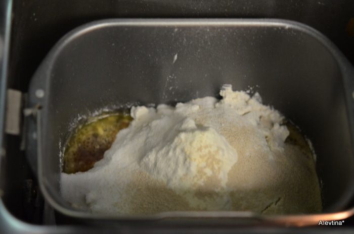 Загружаем в свою х/печку сначала теплую воду и сливочное масло, заканчиваем сухими ингредиентами,сверху дрожжи.